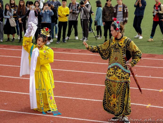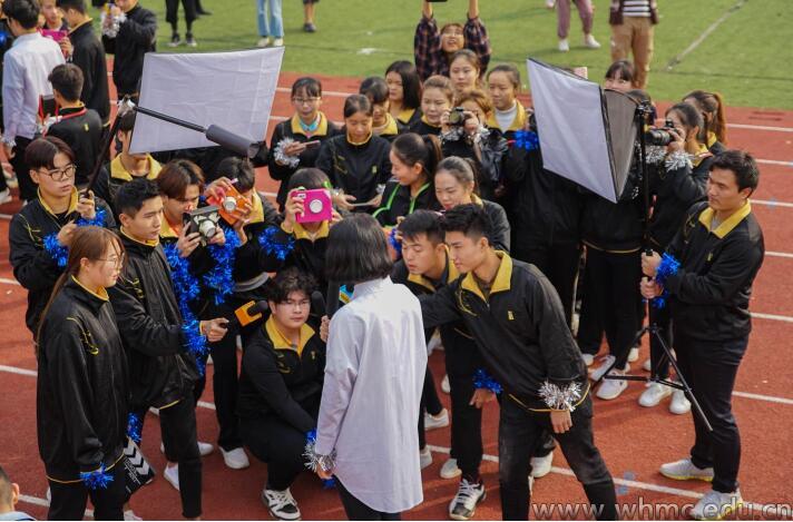新闻传播学院方阵举着印有报纸与话筒的大型海报入场,并拿出了纸质的话筒、相机、摄影机,在主席台下模拟了一场新闻发布会。播音主持艺术学院学生用喊麦的形式合唱了“声韵歌”,并播报了自己家乡的广播台台名,象征着来自不同地方的学子汇聚在米兰体育网页版登录。电影与电视学院结合学院特色,带来了《霸王别姬》《甜蜜蜜》《青春派》等3个不同年代的电影视剧片段,以此唤起3代人的记忆。人文与艺术学院学生朗诵了改编自古诗《江城子•密州出猎》的加油稿,以及该院舞蹈专业的新生带来了一段舞蹈秀,一字马、空翻……展示了学子们积极向上的精神风貌。传媒技术学院学子身穿红、白、黑、蓝4种不同颜色的衣服,象征着不同的电子元件,组成一个“电路图”。文化管理学院学生用黄、白色帽子代表贪吃蛇和食物,随着“贪吃蛇”的身体越吃越大,最终汇成了校徽图案,引得在场的观众连连鼓掌。