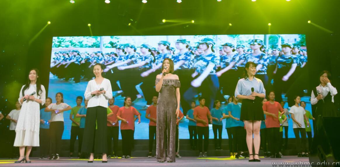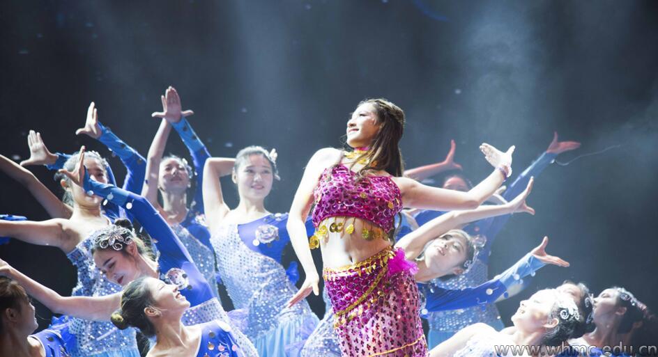 随后,晚会赞助商梵大集团、建设银行工作人员与观众互动,还为新生送上许多小礼物,派发的2轮微信红包点燃了现场的氛围。2017级表演专业新生余为和2016级播音主持与艺术专业学生吴天成为观众带来了吉他弹唱《我在武汉的夜里》,同时屏幕上播放着沙画视频,与低沉深厚的歌声相辅相成。2016级舞蹈学专业学生带来的群舞《出水芙蓉》紧随其后,演员们身穿人鱼裙像水中的精灵,优雅的舞步和舒适的音乐给同学们带来视觉和听觉上的享受。