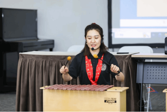 孙赛赛老师在大会的幼儿音乐教育分会场上,凭借出色的音乐能力和教师素养,为与会嘉宾呈现了“奥尔夫教学的实践探索内容”的课程展示,并结合武汉这座城市的本土文化特色与幼儿奥尔夫音乐教育进行融合。她以“鼓圈”的形式,带领现场嘉宾沉浸在音乐运动中,让分享、连接、包容、支持的鼓圈精神融入其中。