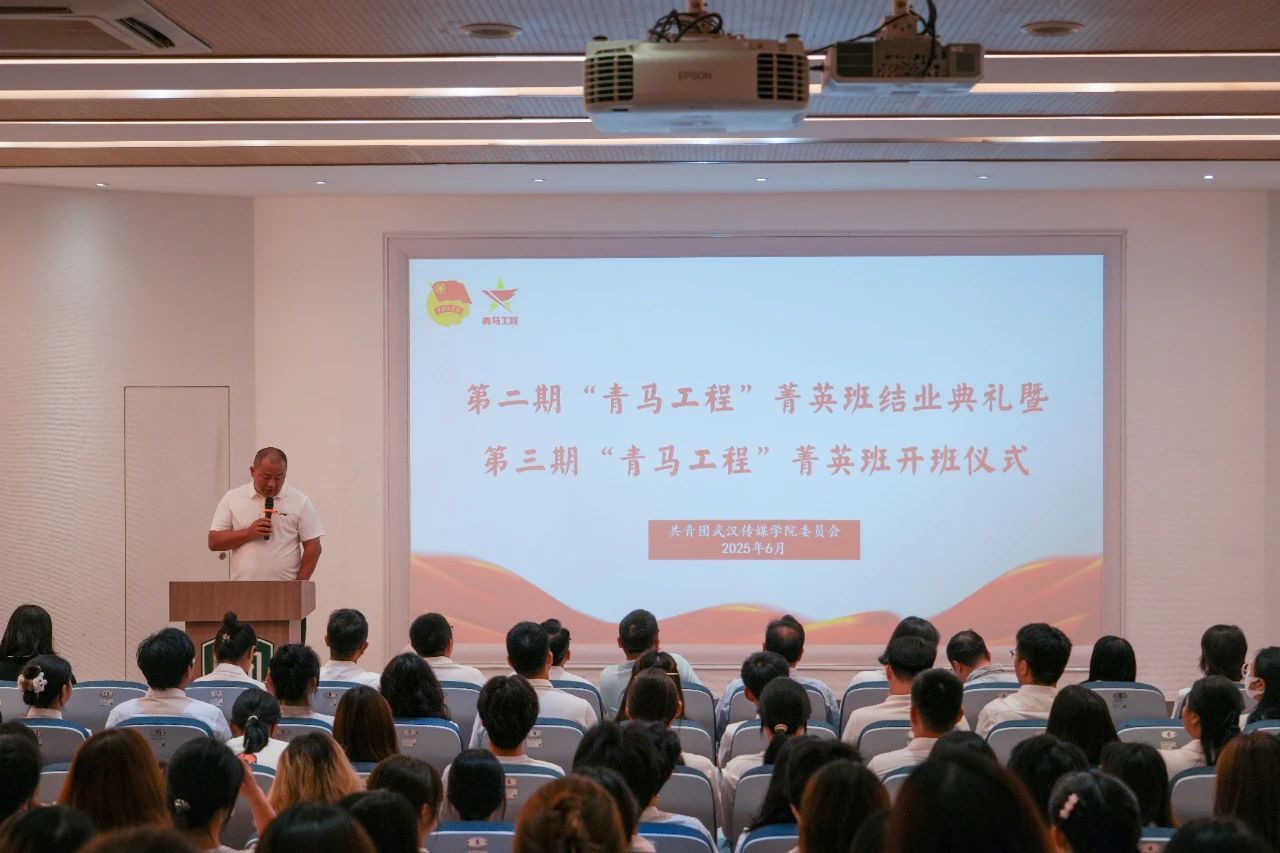 仪式在庄严的国歌声中拉开序幕。第二期 “青马工程” 菁英班班主任华震东回顾培养历程时提到,班级通过健全组织机制、强化理论武装、注重实践转化,帮助学员在政治素养、理论水平和实践能力上实现全面提升,并勉励学员以 “青春之力” 助力湖北高质量发展,为中国式现代化湖北实践贡献力量。