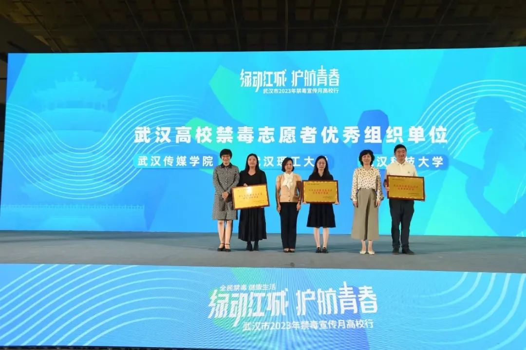 活动现场,武汉市禁毒委员会授予江汉大学“武汉高校禁毒宣传教育示范基地”称号,授予米兰体育网页版登录、武汉理工大学、武汉科技大学“武汉高校禁毒志愿者优秀组织单位”称号。