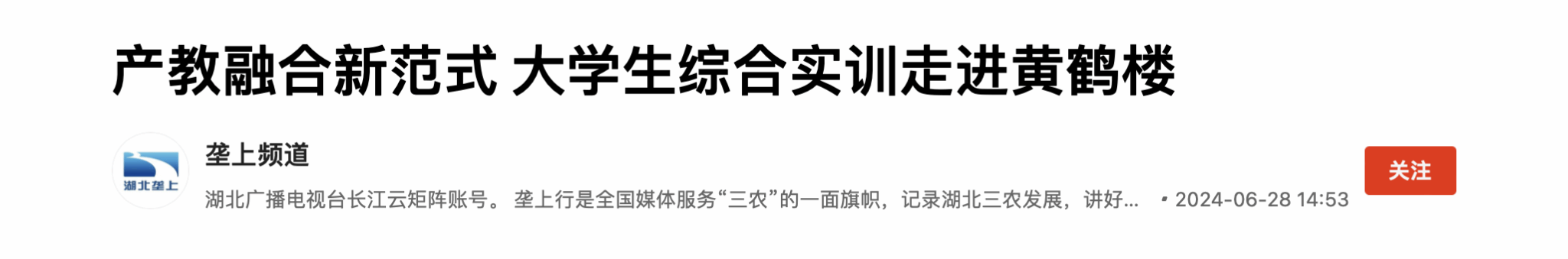 【垄上频道】产教融合新范式 大学生综合实训走进黄鹤楼
