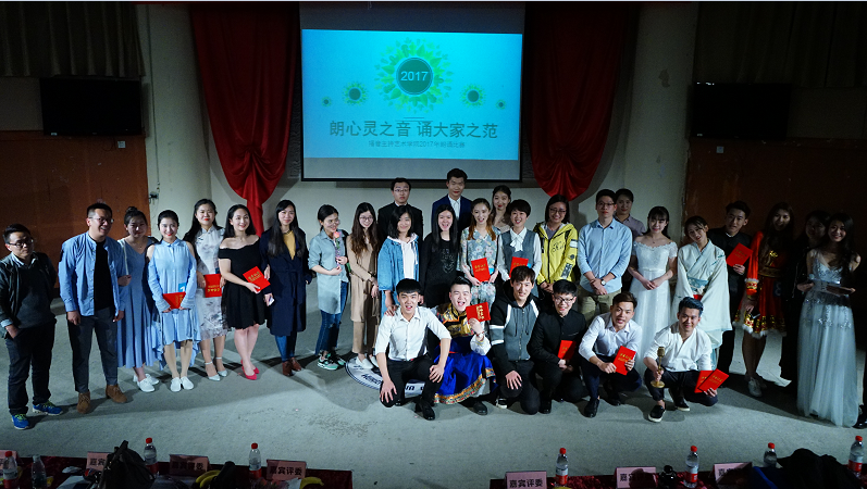 为了影响更多学生学习专业的积极性,提高学生对于专业活动的参与性,促进同学之间专业的交流,增强同学们的专业素养,2017年4月13日晚十八时三十分,播音主持艺术学院“朗心灵之音,诵大家之范”2017年朗诵比赛在我校圆形报告厅隆重举行。此次朗诵比赛分为初赛和决赛,在报名期间共有七十多个作品参赛,经过评委老师的选拔,最终共有十五组选手进入决赛,其中囊括了我院三个年级的同学,引起了我院广大师生的关注。此次朗诵比赛设一等奖一名、二等奖两名、三等奖三名、最具潜质奖一名、最佳人气奖一名。其中最佳潜质奖由现场评审团集体评议选出,最佳人气奖由现场观众投票决出。比赛现场气氛热烈,同学们热情高涨,参赛选手或个人或组合,以饱满的激情、激昂的语言、大方得体的举止来展现自己的实力。