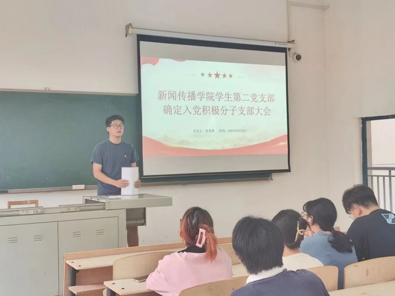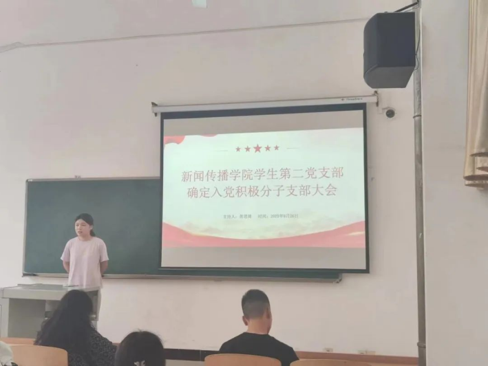 为了深入学习贯彻习近平总书记关于党的建设的重要思想,并坚持以习近平新时代中国特色社会主义思想为指导。9月26日,新闻传播学院学生第二党支部在3203教室举行确定入党积极分子支部大会。此次会议由黑思博同志主持,第二党支部全体党员和本期入党积极分子参会。