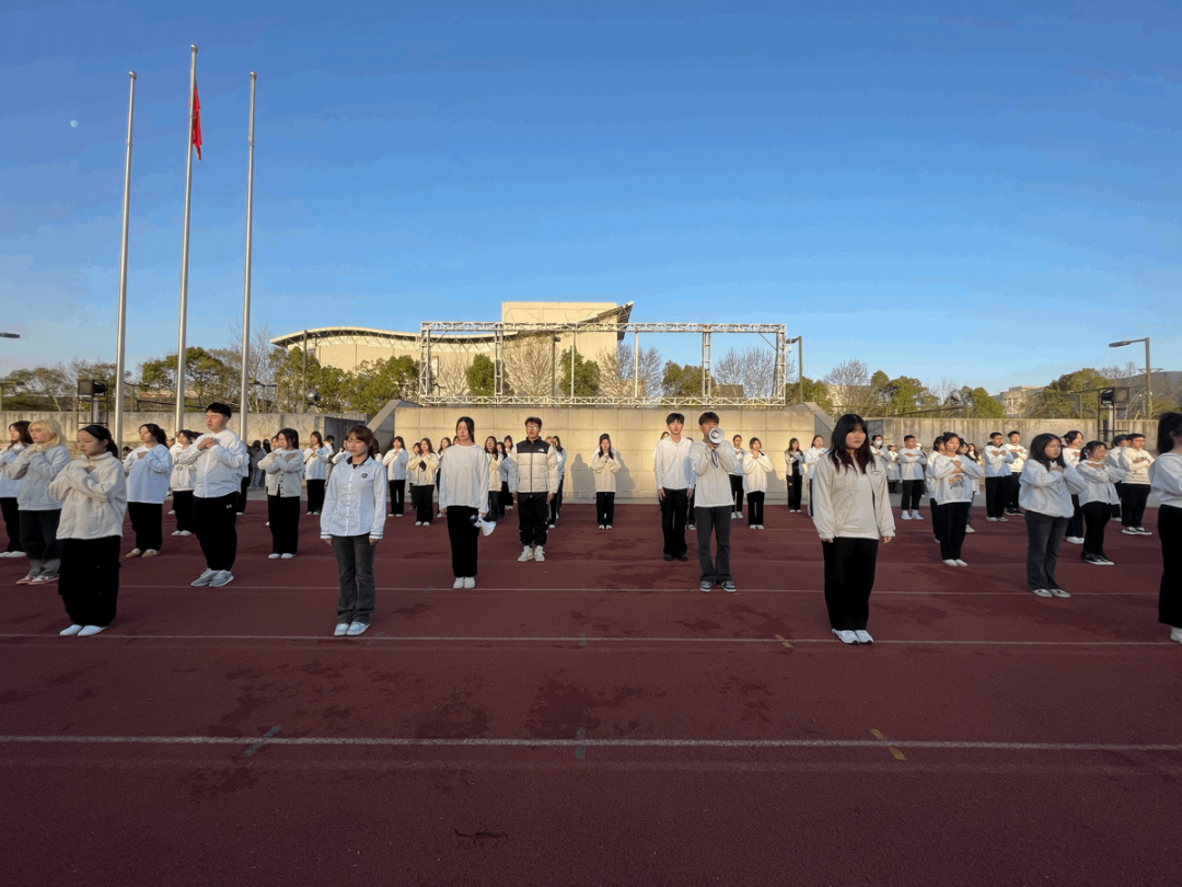 迎着朝阳,伴随着国旗班铿锵的步伐和洪亮的口号,升旗仪式正式开始。鲜艳的五星红旗伴随着雄壮的《义勇军进行曲》冉冉升起。全体师生行注目礼,共唱国歌。