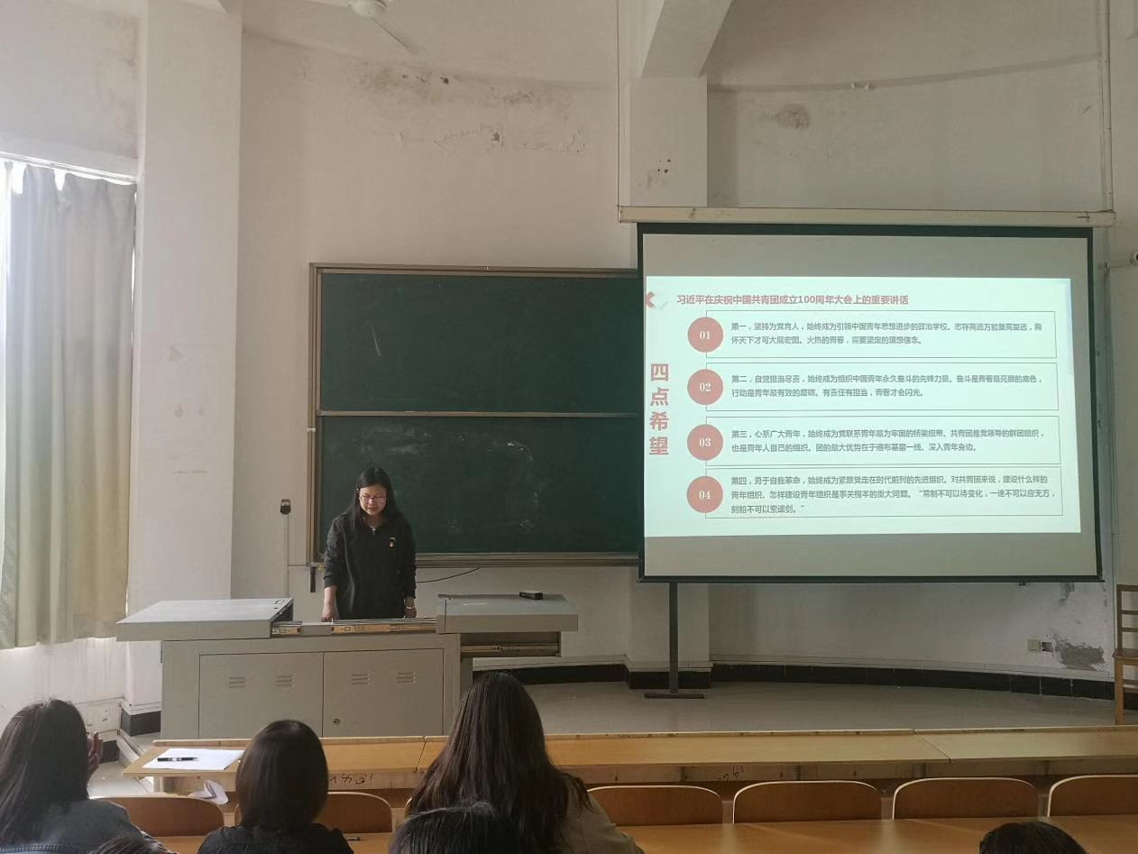 “习近平总书记在庆祝中国共产主义青年团成立100周年大会上的讲话,字字如金,句句如玉,振奋人心!总书记对青年学生寄予厚望,激励广大团员青年在实现中华民族伟大复兴中国梦的新征程上奋勇前进!”在学习习近平总书记在庆祝中国共青团成立100周年大会上的重要讲话时王玲玲同志说到。