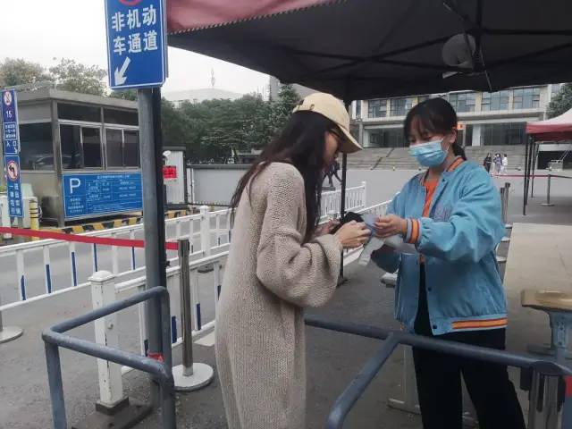 11月3日,中午11点50分-13点20分、下午16点50分-17点35分,新闻传播学院第35期发展对象第二小组轮流值守在校门口,为同学们的出行做好防疫工作。