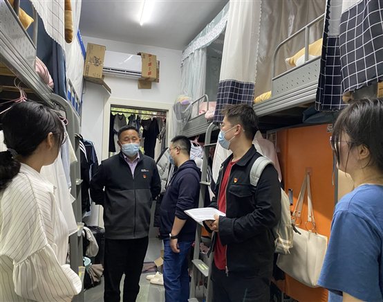 在检查过程中领导老师们对学生们关怀备至,询问了解同学们的学习近况与生活作息,并叮嘱学生们要重视宿舍安全卫生,认真遵守学校疫情防控安排,维护好个人健康安全。