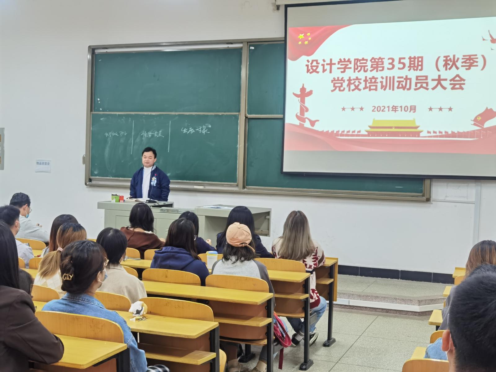 (通讯员 董玲东)10月13日,设计学院党总支部在7号楼7203教师顺利召开2021年秋季(第35期)党校培训动员大会。入党积极分子、发展对象、预备党员120余人参加了大会。设计学院党总支部副书记王龙同志、学生第一支部书记黄好同志、学生第二支部书记林亮亮同志、学生第三支部书记解晓庆同志、学生第四支部书记刘念同志出席此次会议,大会由设计学院党总支部组织员董玲东同志主持。