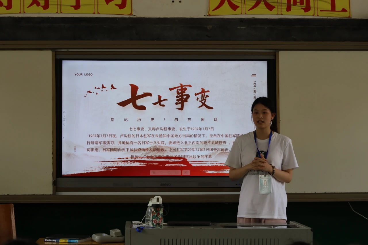 为培养青少年爱国情怀,推进爱国主义教育,“四史”教育,实践团队在课程安排中,还开设有思政课程。在老师们的讲述中,从“七七事变”到“两弹一星”,中华民族近现代史的百年画卷,在孩子们面前缓缓展开,,从“科教兴国”到“文化强国”,美丽中国的时代新图景,浮现在孩子们眼前。一颗颗爱国的种子深埋胸中,一个个红色的印记铭刻血脉。