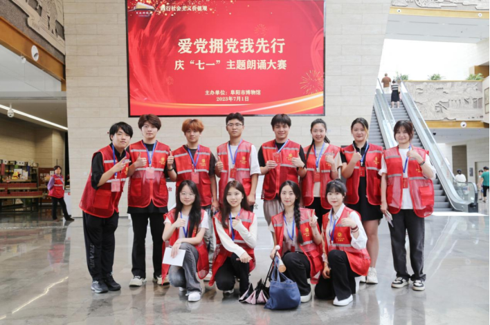 本次活动正逢“七一”建党节,阜阳市博物馆举行了“爱党拥党我先行”的庆“七一”主题朗诵大赛,同学们积极参与其中,助力博物馆搭建生动的“红色课堂”,传播红色文化,宣扬革命精神。
