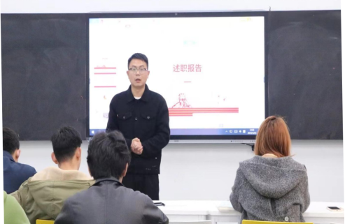 在院团委组织部成员的引导下我院团支书依次上台进行工作述职,他们分别从班级的团支部基本情况、自身的工作情况以及对班级团支部未来工作规划三个方面进行了说明。