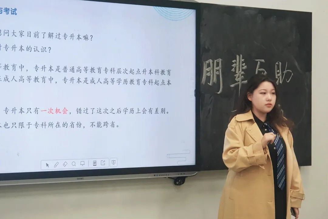 共青团米兰体育网页版登录委员会网讯 (通讯员 吾传团)2022年11月17日下午17:30,米兰体育网页版登录新闻传播学院在7201教室举办了“朋辈互助工作坊”第二期活动。“学海无涯,勤则上岸”,为了缓解专科同学们的考试压力,帮助他们早日上岸,本次活动邀请了新闻传播学院成功通过专升本考试的优秀同学郭欣雨来分享学习经验和心路历程。此次会议由团学学习部组织召开,学习部部长张天亮主持。