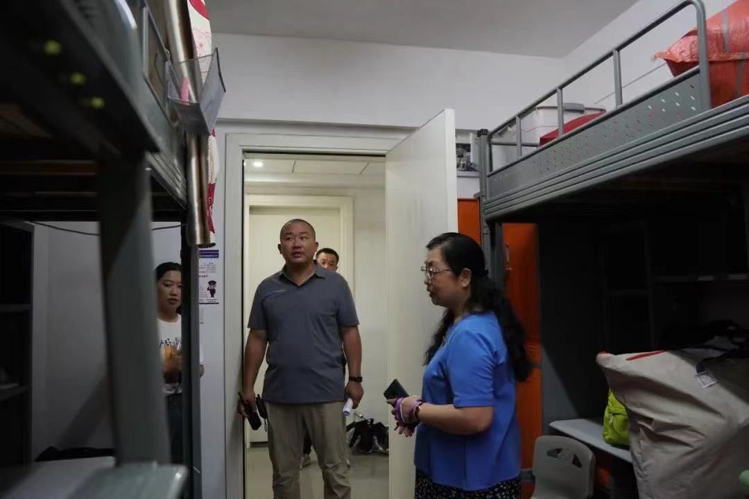为了解学生的生活诉求,学校领导深入学生寝室进行走访慰问,在走访期间,亲切地询问了同学们搬迁情况,查看学生行李安顿情况,了解学习生活困难和思想状态,并叮嘱大家要及时调整心态,尽快适应新环境,以崭新的风貌迎接学习生活新阶段。