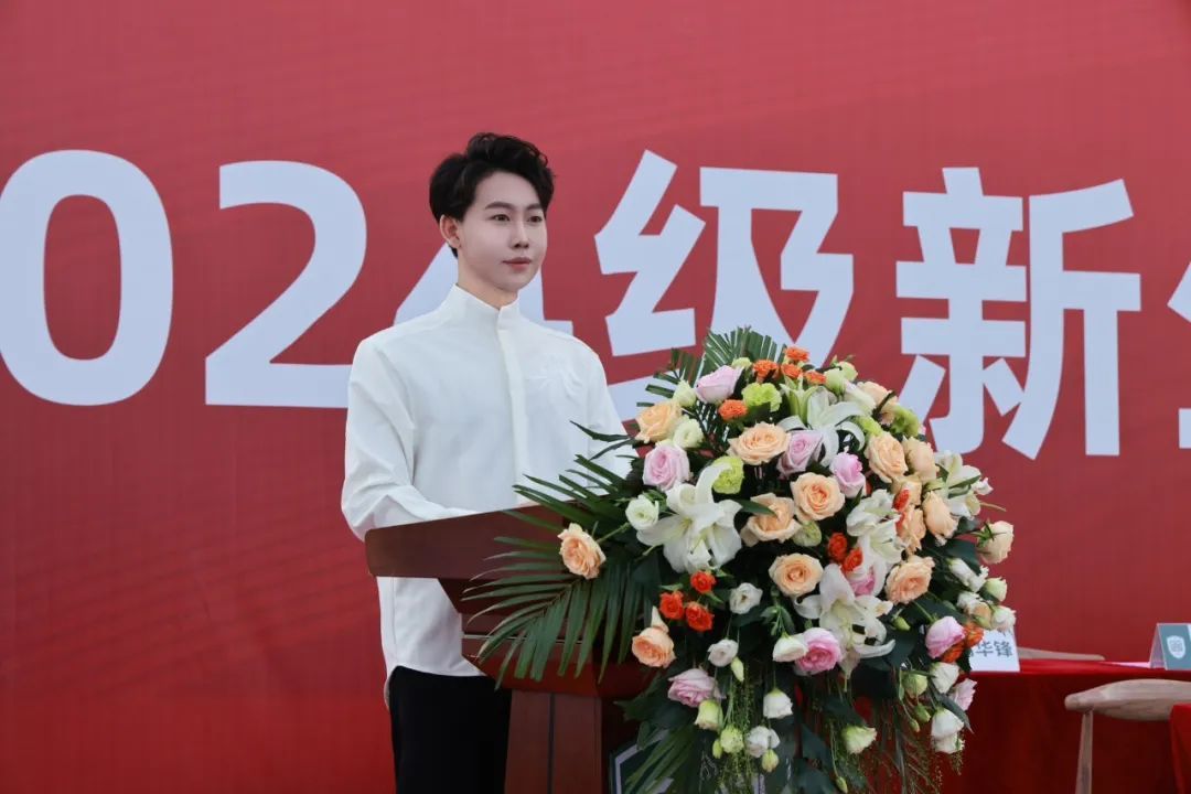来自人文与艺术学院的蔡俊杰作为新生代表发言。对于大学生活,他表示:要挖掘身边事、书写身边人、讲好家乡故事。做家乡故事的讲述者、中国故事的传播者,做我大中华新时代的传媒人!
