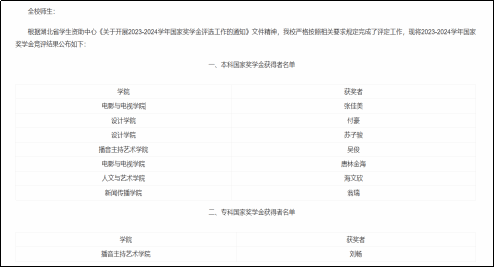 大会最后,由主持人宣布竞评结果,经评委投票确定电影与电视学院张佳美、设计学院付豪、设计学院苏子骏、播音主持艺术学院吴俊、电影与电视学院唐林金海、人文与艺术学院海文欣、新闻传播学院翁瑞、播音主持艺术学院刘畅8名学生通过竞选获得米兰体育网页版登录2023-2024学年国家奖学金评定资格。