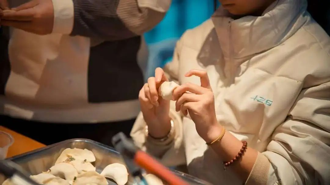 活动当天,同学们成员们早早地来到食堂,忙碌而有序地准备着包饺子的各项事宜。在包饺子过程中,同学们纷纷拿出自己的看家本领,力求包出最漂亮的饺子。有的饺子圆润饱满,有的饺子则创意十足,形态各异,展现了同学们的心灵手巧。大家一边包饺子,一边聊天,分享着冬至的传统习俗和各地的过节方式,现场充满了欢声笑语。
