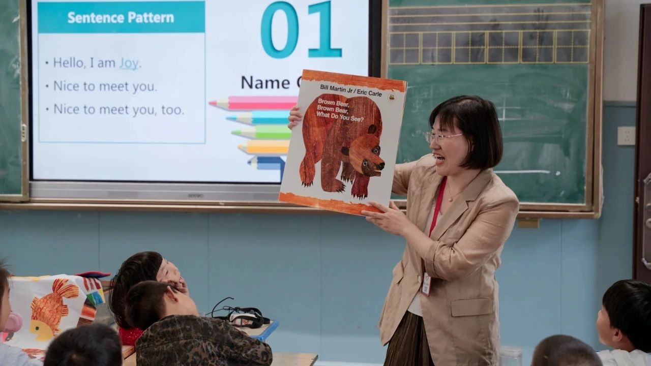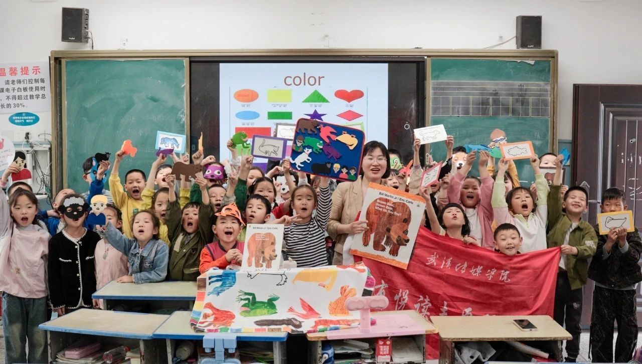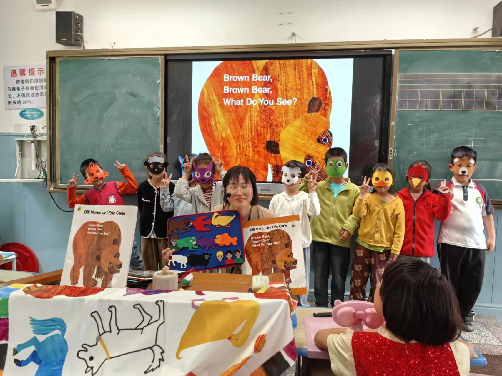 法泗桥头小学是一所乡村寄宿制学校,85% 的学生为留守儿童。对于这群孩子而言,这堂英文绘本课不仅是他们人生中第一堂正规英语课,更是一次跨越语言与文化鸿沟的启蒙之旅。李娟老师以经典绘本《Brown Bear, Brown Bear, What Do You See?》为纽带,创新运用 “五感体验教学法” 与戏剧化互动,将英语学习转化为充满趣味的沉浸式探索,让知识如春风化雨般浸润童心。