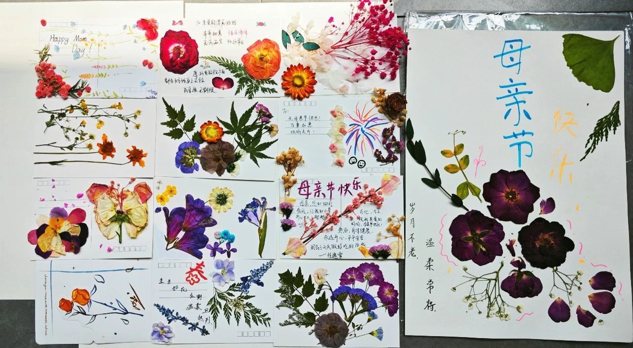 这场“非遗花笺,心印春晖”活动,不仅让同学们近距离接触到非遗押花技艺,感受传统文化的博大精深,更在母亲节来临之际,为同学们提供了一个表达对母亲爱意的特别方式。相信这份蕴含着非遗魅力与真挚情感的贺卡,定会成为母亲心中最珍贵的礼物,也让非遗文化在青春的创意中焕发出新的生机与活力。