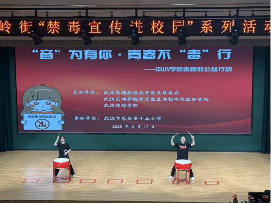 此次公益行动以习近平总书记 “用文艺振奋民族精神” 的号召为指引,立足音乐专业特色,通过鼓乐表演、原创音乐小品、主题歌曲演唱、课本剧等艺术形式,为城乡青少年打造寓教于乐的禁毒课堂。活动覆盖光谷第三初级中学、光谷第四初级中学、光谷十五小、光谷实验初中、汤逊湖学校等多所中小学,累计惠及师生超3000人次,发放宣传资料1000余份,开创了全省以音乐教育推进青少年禁毒宣教的新模式。这不仅是对传统禁毒教育的创新突破,更是高校将专业教育与思政教育深度融合的生动实践,契合思想政治教育“以美育人、以文化人”的理念,在青少年心中播撒下识毒、防毒、拒毒的种子。