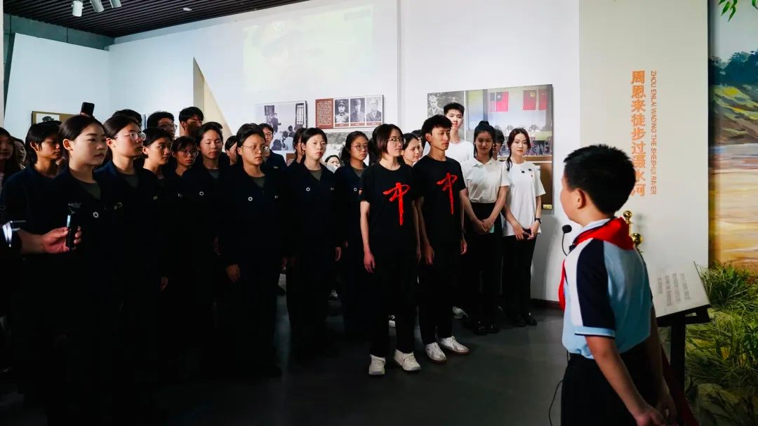在启动仪式结束后,各参赛队伍齐聚中原突围纪念馆,进行参观学习,追寻红色足迹,通过参观珍贵文物、历史照片及多媒体展示,深入了解中原突围的历史背景与重要意义,深刻感悟革命先烈的英勇事迹与崇高精神。大家认真聆听讲解员的讲述,深入了解中原突围的历史背景、重要意义和艰辛历程,深刻感受到革命先辈们坚定的理想信念、顽强的斗争精神和无私的奉献精神。各高校国旗护卫队成员分享自己对红色历史的感悟,当地少先队员还为大学生讲红色故事。