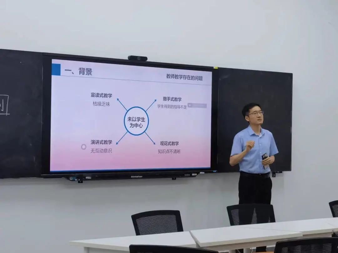 在准备案例的过程中,老师们要时刻牢记本节课的教学目标和本门课程的人才培养目标,否则极容易出现观花式教学,吴占勇老师结合自身授课、备赛、参赛的经历与经验,首先列举了教师教学中存在的问题,并从这些问题出发与老师们共同探讨了“以学为中心”的教学理念。