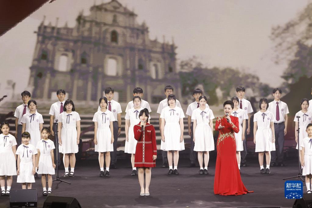 9月25日,女高音歌唱家王庆爽携手澳门学生,带来京剧艺术和童声合唱完美结合的《七子之歌》。新华社发