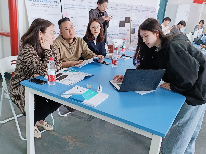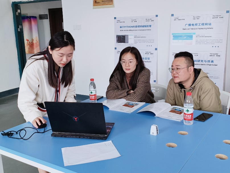 在介绍完嘉宾后,胡明星院长和未能到场的段永良教授对毕业生们送出了希望和祝福,之后便是毕业生们介绍自己毕业设计作品的时间,每位同学都落落大方的向嘉宾们展示自己的作品并加以说明,期间嘉宾也会提出自己的意见和想法,指出设计作品的改进空间。下午,20级、21级与22级的同学们有组织的来参观了作品,在展览现场,同学们纷纷为毕业生们的努力和创作能力点赞,他们认为,这些作品不仅展现出学生们的才华与成果,更体现了广播电视工程专业学生们对专业的热爱与执着。