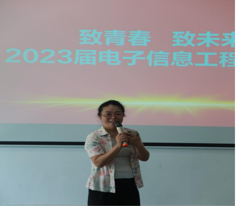 在同学们的热烈欢呼中,传媒技术学院杨洁老师上台致辞,杨老师对到来的院长,各位老师以及毕业生表示最热烈的欢迎,同时表达了对他们美好的祝愿。