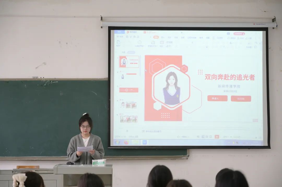 答辩会上,各候选人主要从思想道德修养、学业成绩、学科竞赛、社会实践、志愿活动、学生工作、学生活动等多方面、多角度进行自我展示。候选人答辩,候选人们思想上进,积极向党组织靠拢;学业上不断创新,成果丰富;工作严谨认真,业绩突出;实践方面不断攻坚克难,百花齐放;综合素质突出,展现出了朝气蓬勃的精神面貌、斐然的综合素质和卓越的个人品质,体现了勇担重任、奋发有为的新时代青年形象。