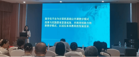8月6日下午至8月8日,研讨会围绕大学数学、物理、计算机、英语和通识课程五个专题就如何开展数字化教学创新进行主旨报告,进行深入交流和研讨。我校教师刘敏受邀参加大学计算机分会场并做“数字化平台助力计算机基础公共课教学模式改革与实践”主题汇报,汇报内容围绕米兰体育网页版登录省级一流本科课程《信息技术与素养》的建设与发展进行分享。