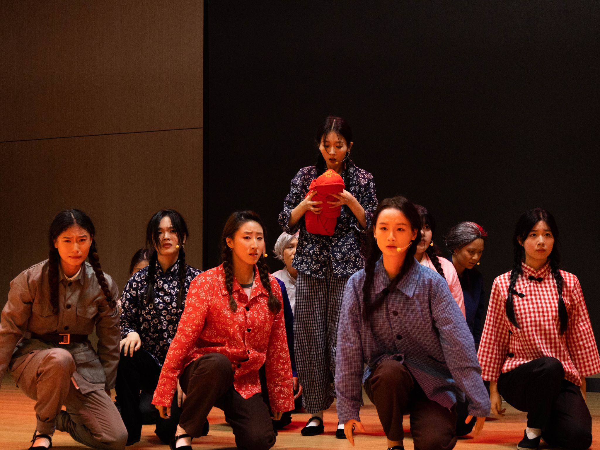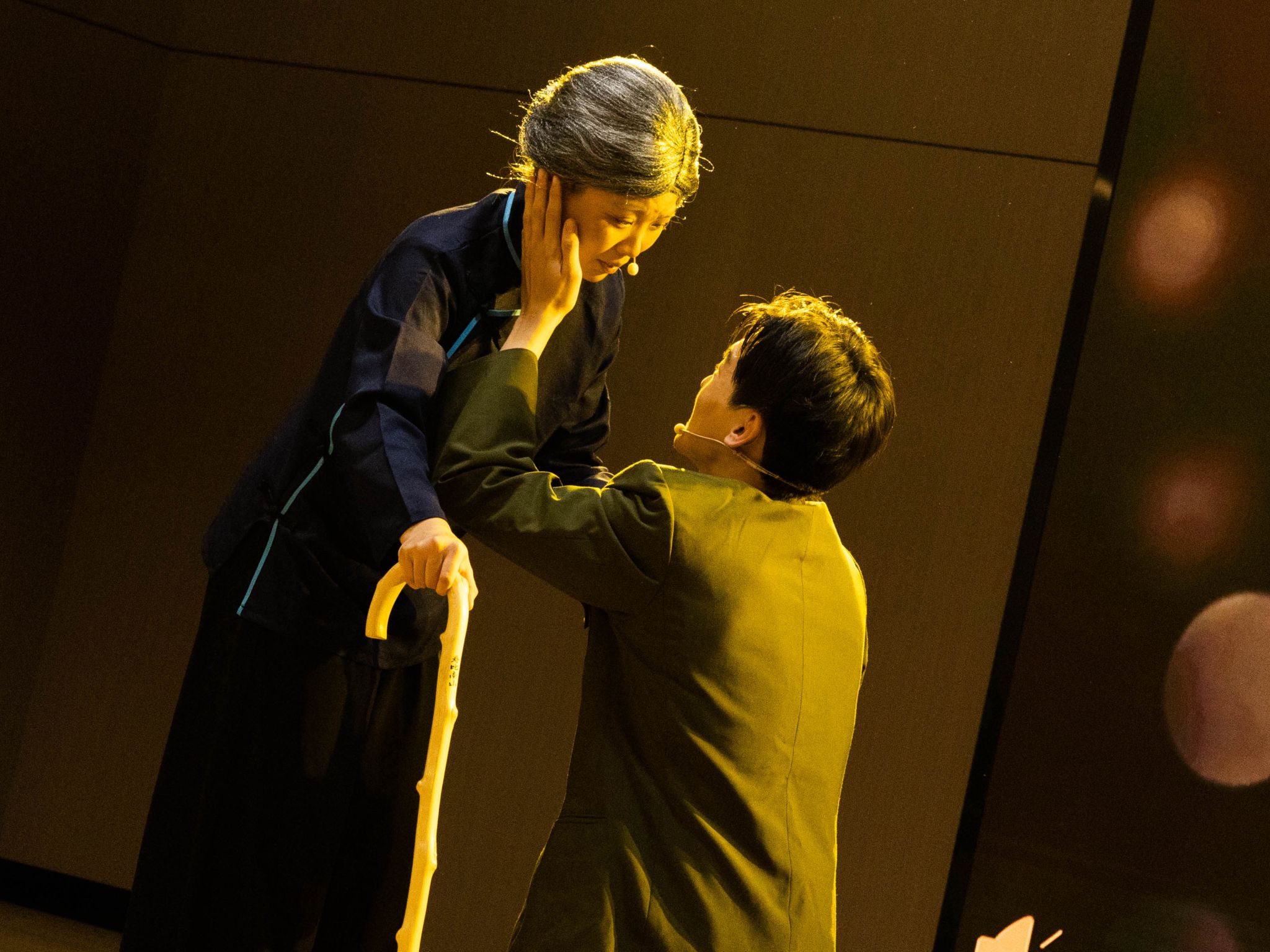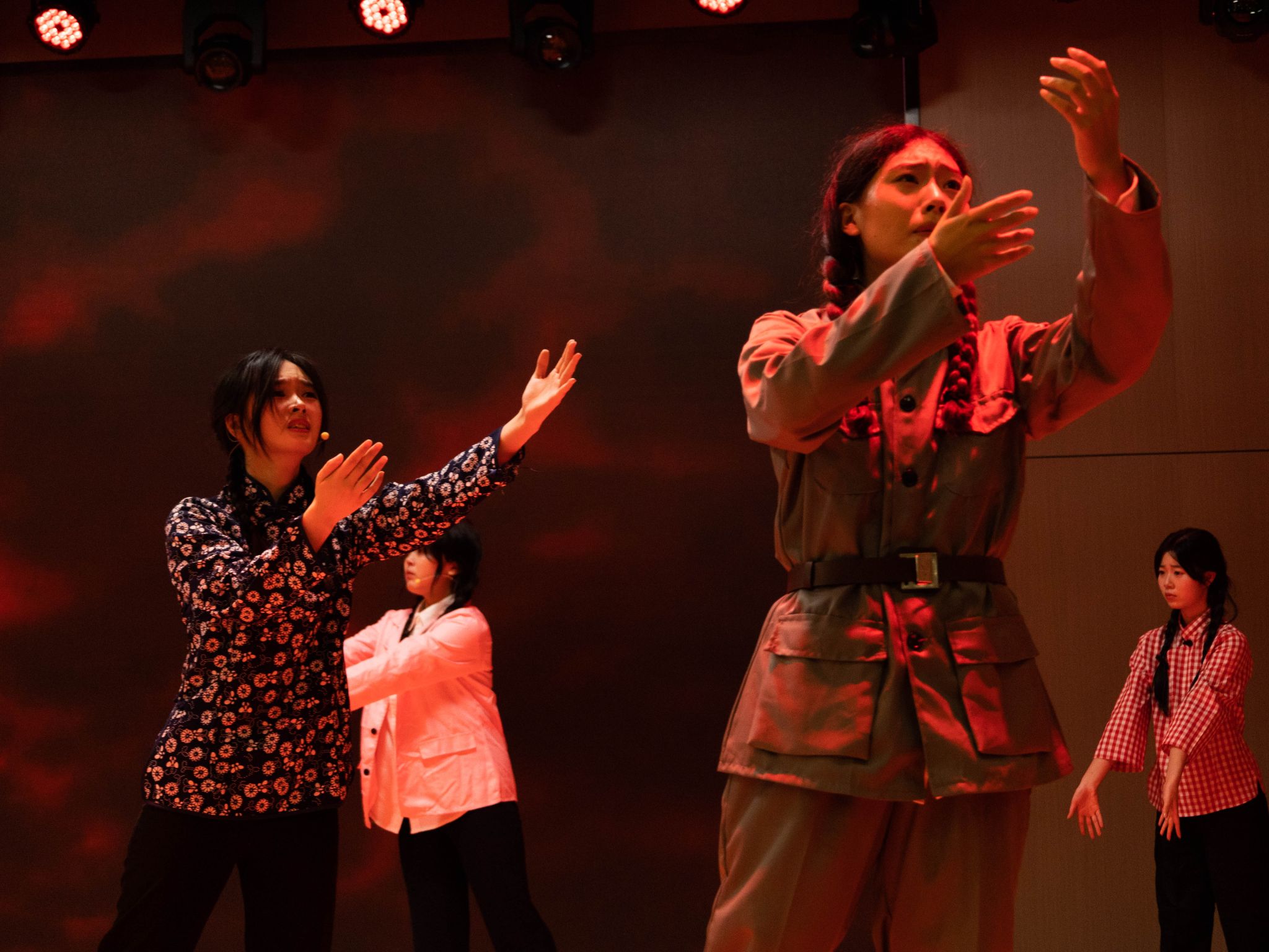 在剧中饰演红柳娘的老年时期,是来自表演B2301班的卢云熙同学,关于如何在表演中进行情感调动的问题,她回答道:“对我而言,年龄和年代上的跨越非常有挑战。在查阅资料和与对手演员碰撞的过程中,我不断寻找这片土壤上的人们对于那个时代的情感共鸣。也正因为在这片土地上有过一年的生活,让我和红柳娘有了更深的感情连接。”