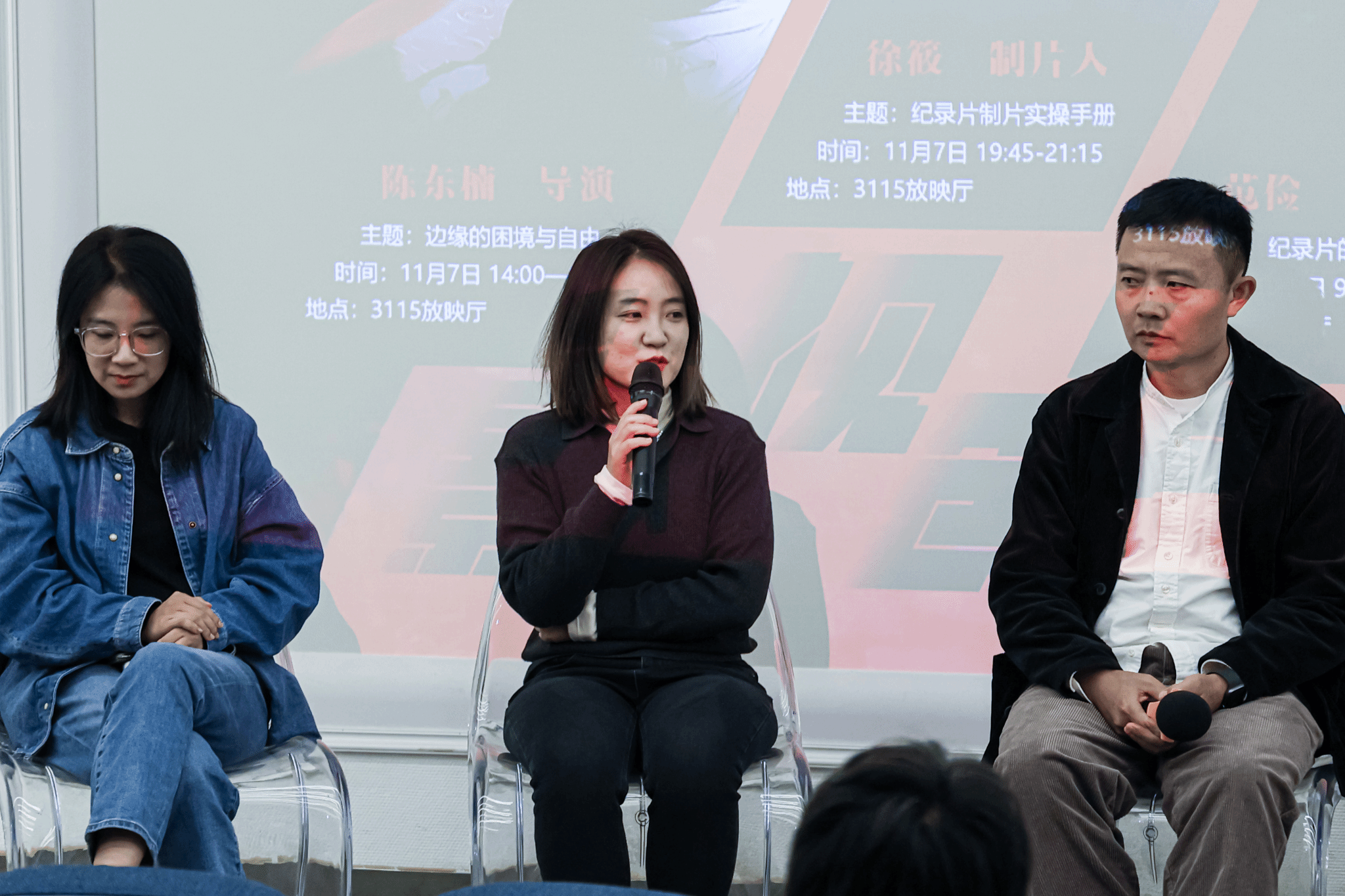 制片人徐筱老师则分享了她在近期担任制片的纪录片《女人世界》中的探索经验,徐筱老师说道:“在拍摄的时候,大部分时间只有一个人,但是在后期,你可能一个人就没办法做这些事情,所以还是推荐大家创作纪录片可以参加综合类的电影节,在一众的剧情片中,纪录片类型反而显得出彩,同时在电影节期间也可以接触到更多明星资源。”