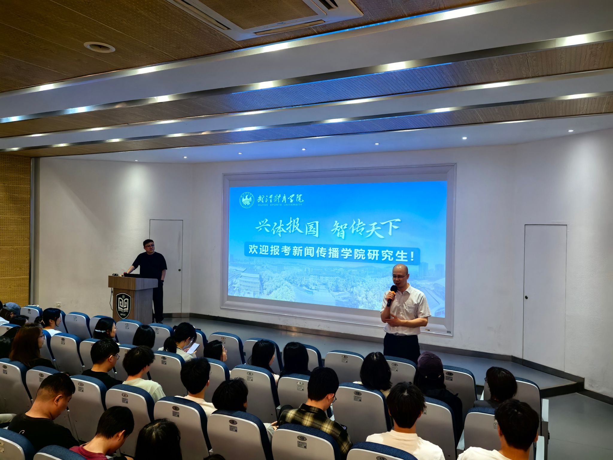在宣讲会上,武汉体育学院新闻传播学院的老师从学科建设体系化、师资队伍专业化、科研成果规模化、人才培养精准化四个维度,系统介绍了学院四个硕士学位授予点的基本情况。
