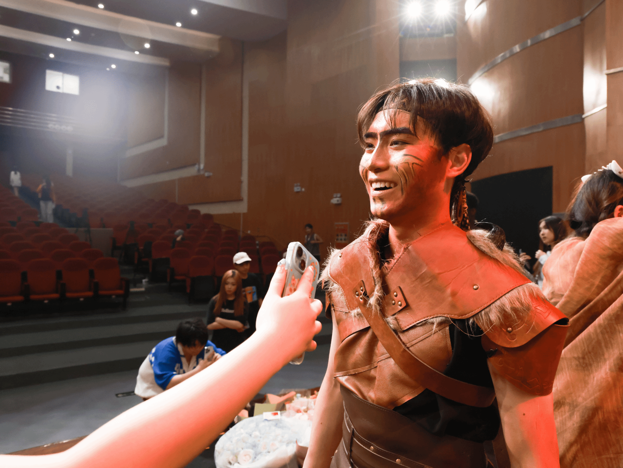 导演于昊表示,《狮子王》作为经典故事,其人物关系、情感纠葛和角色形象都极具代表性,且该剧涵盖表演专业的唱、跳、演、说四门核心课程,是展示学生四年学习成果和检验表演系教学成果的绝佳载体,能全方位考验学生的综合能力。在改编过程中,团队面临诸多客观条件限制,原版的复杂舞美和造型设计难以复现。为此,老师们充分发挥创意,利用有限资源和预算,构建多层次灯光叙事体系弥补舞美不足。同时,同学们也积极参与,自行改装演出服装,既节省成本又增添创意。通过团队努力,该剧以简约而富有创意的形式呈现给观众。谈及剧目最想传达的情感,于昊表示,希望观众通过辛巴的成长历程,思考如何勇敢面对生活、做出选择,并在面对困难时保持向上的生命力,遵循内心,勇往直前。