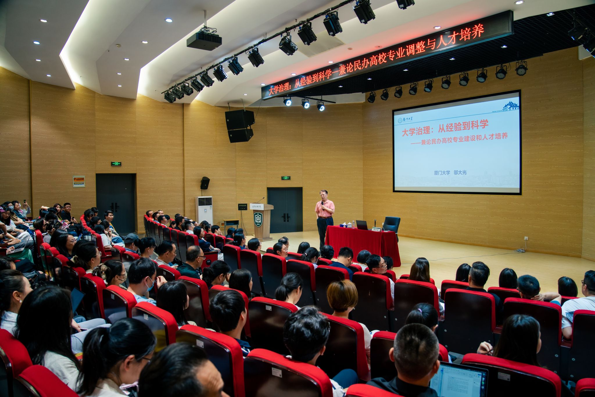 (记者 赵洲舟 摄影记者 唐文瀚) 5月14日下午,中国高等教育学会副会长、厦门大学原副校长邬大光教授受邀为我校作了“一流民办大学的成熟与转型”的专题报告。全体校领导、科级以上干部、教研室主任、专业负责人等参会,常务副校长宗微主持会议。