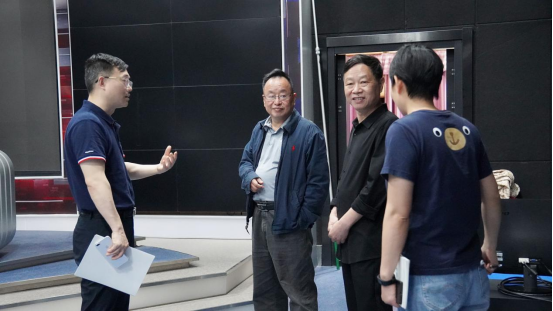 会后,武汉教育电视台节目中心主任王智锋带领郭新力一行参观了台里的实景及虚拟演播厅,详细介绍了演播厅内的设施构造及目前参与制作的节目内容。