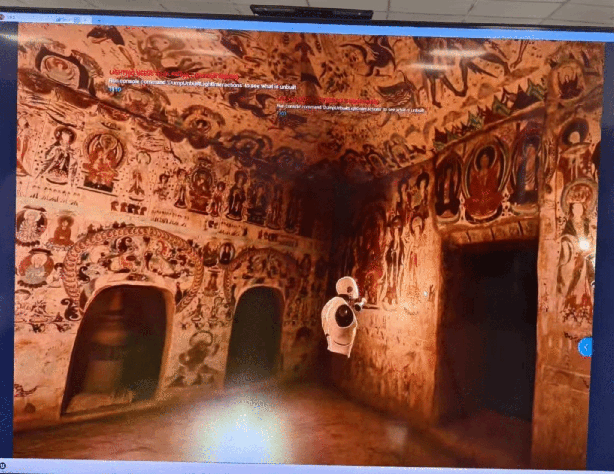 在这里,他们观摩了实时真人动捕、实时虚拟人驱动等技术的展示,并参与VR多人大空间的互动体验,沉浸式感受了敦煌莫高窟第285窟的震撼观感。