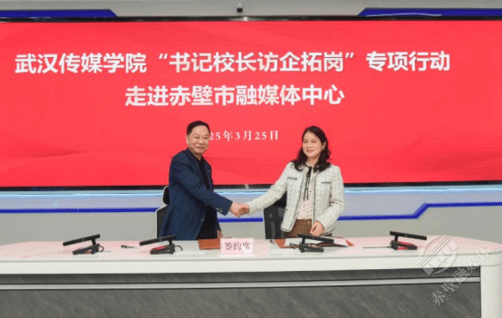 3月25日,我校副校长范纯新率队前往赤壁市融媒体中心,开展“书记校长访企拓岗”专项行动,双方签订了“校企共建就业实习基地”协议。这是2018年双方共建实习基地以来校企合作的进一步深化,将进一步推进应用型人才培养与就业工作。