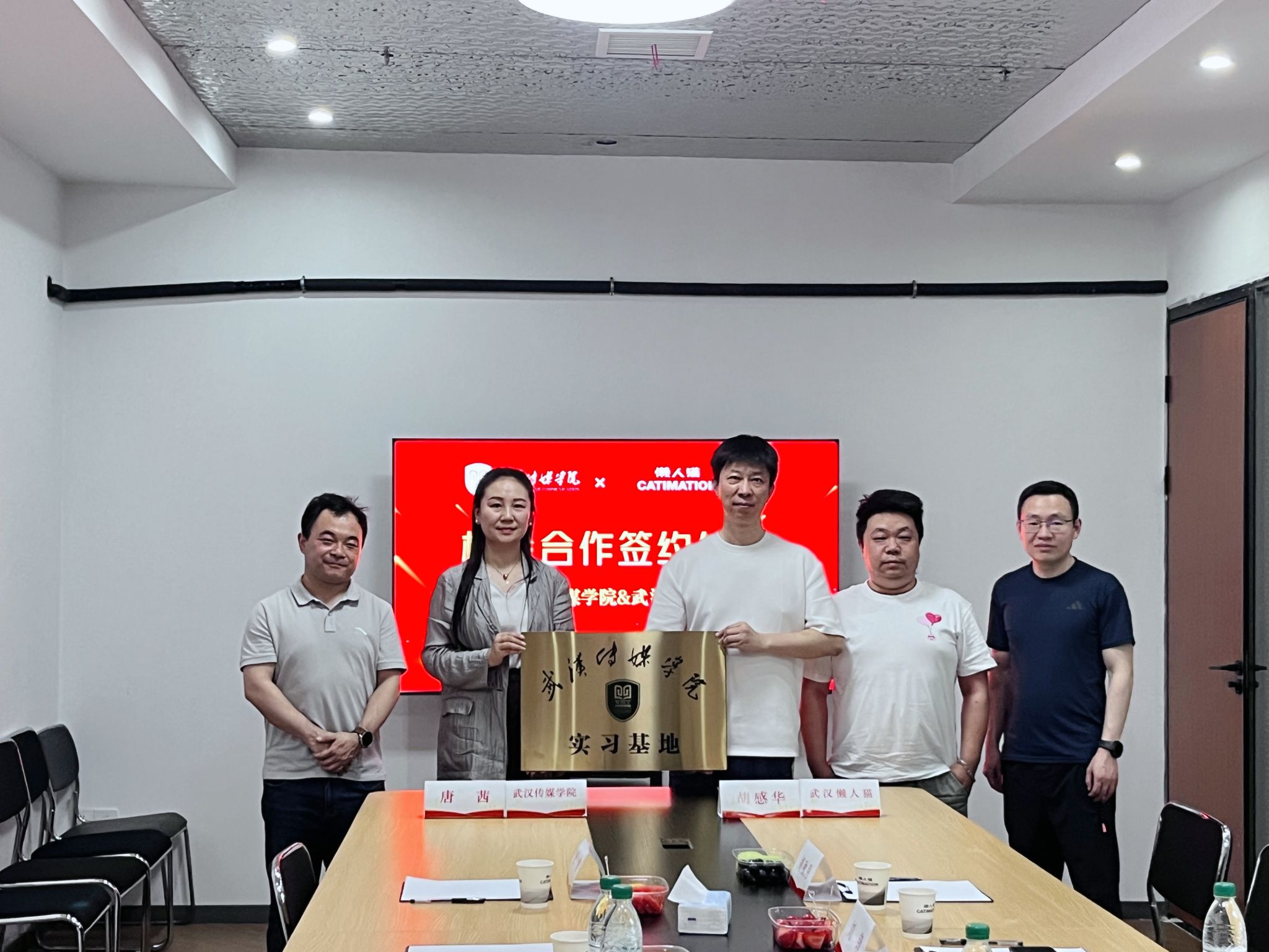 为积极响应国家深化产教融合、促进教育链、人才链与产业链有机衔接的政策号召,4 月 21 日,我校设计学院院长唐茜、党总支部副书记王龙、环境设计教研室副主任沈婧及骨干教师汪润、王子文等一行前往武汉懒人猫数字科技有限公司,开展校企合作签约及授牌仪式。双方秉持 “优势互补、资源共享、互利双赢、共同发展” 的原则,正式开启携手共进、合作育人的新篇章。