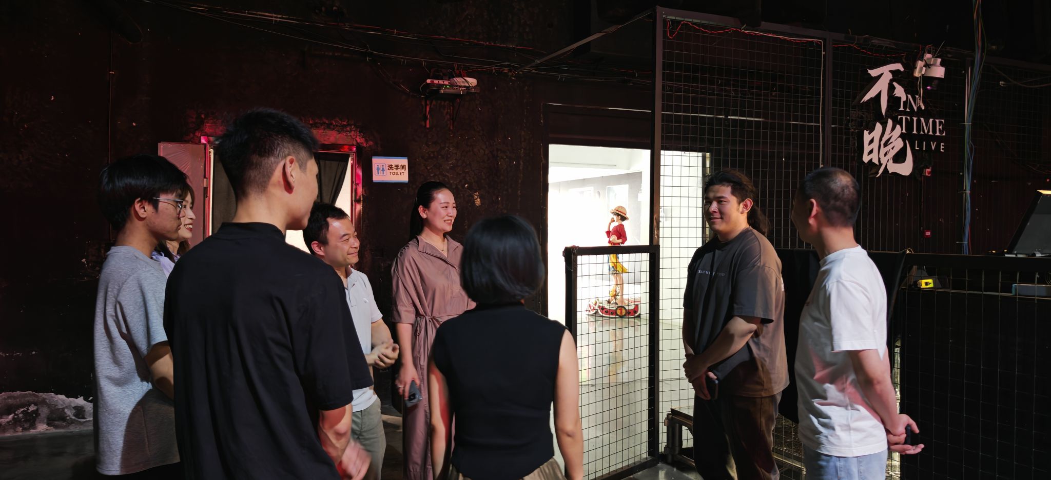 仪式结束后,设计学院师生代表参观了不晚文化的展演现场。院长唐茜慰问了戏剧影视美术设计系2020级毕业生杨天宇。杨天宇毕业后加入不晚文化公司舞台技术部,凭借专业所长,迅速成长为优秀灯光控台师。他表达了对母校和企业的感激之情。