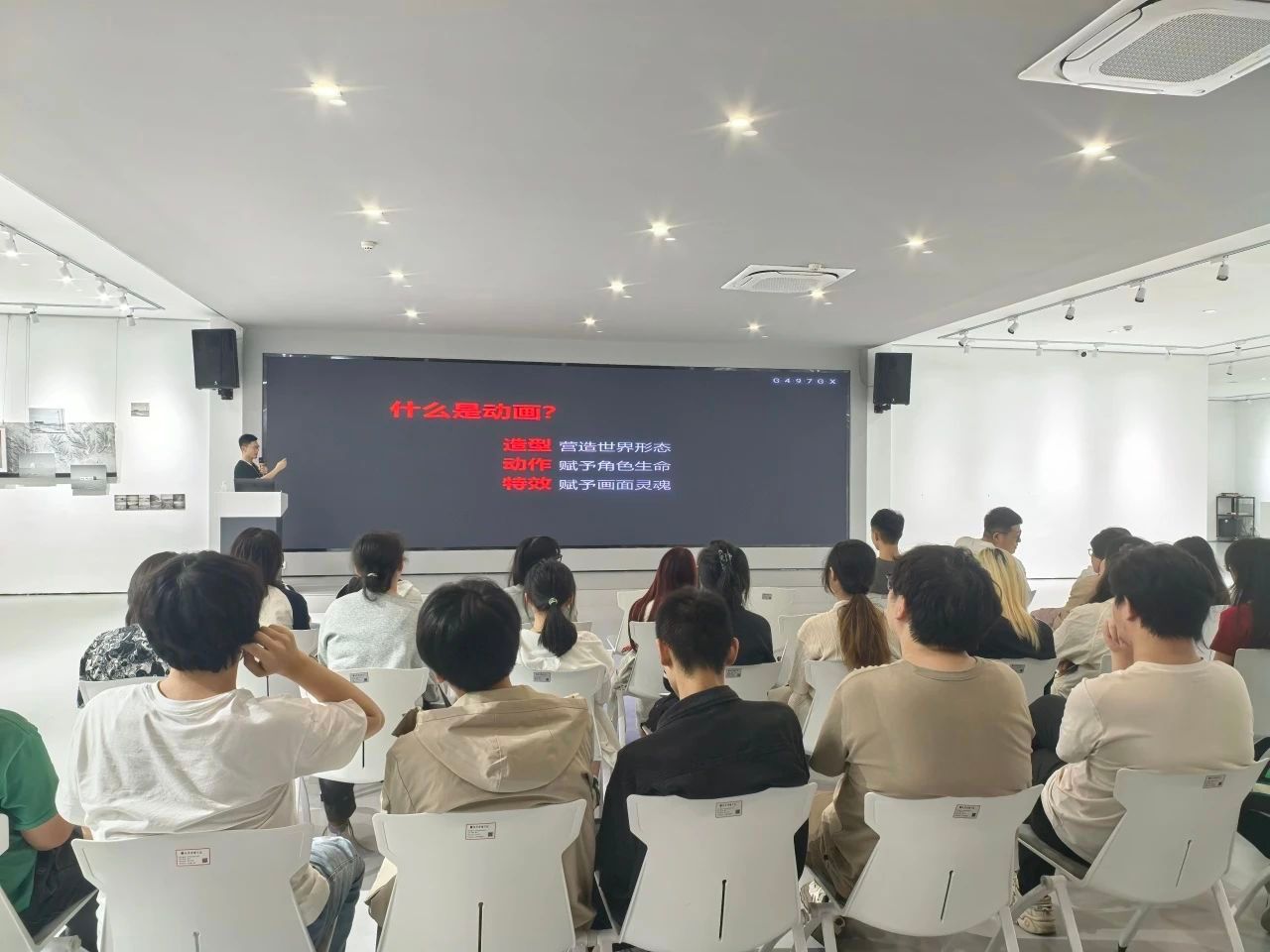 活动现场,武汉两点十分文化传播有限公司副总经理韩强、拂晓教育中心负责人李向平及教育主任刘新洋作为演讲嘉宾,为学生们带来了精彩纷呈的分享。韩强结合企业实际案例,深入剖析了动漫行业技术革新与人才需求,为学生们揭示了行业发展的最新趋势。李向平则聚焦于 AI 在动画生产中的应用,展示了人工智能工具在角色设计、动作捕捉等关键环节的实战价值,让同学们对前沿技术在动画领域的应用有了更直观的认识。