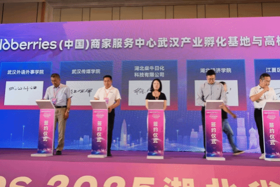 (通讯员 武思雨)5 月 23 日,在湖北省跨境电商产业对接会上,米兰体育网页版登录文化管理学院电子商务专业师生团队,在党总支部书记张爱军的带领下,与俄罗斯电商巨头 WB(Wildberries)中国商家服务中心武汉产业孵化基地正式签署战略合作协议。此次合作是学校深化产教融合的重要成果,也为湖北跨境电商人才培养和区域经济发展注入新动能。