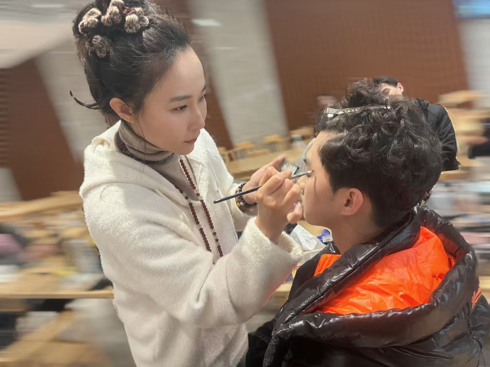 马莉老师表示:“因为这次的表演是关于国家公职人员,所以在服化上需要特别注意,如纪委工作人员的服装就应选择整洁、庄重的正装,颜色以深色系为主,如黑色、深蓝色等,体现纪委工作的严肃性和专业性,让观众一眼就能感受到角色身份。除此之外,我们还注意到了服装和道具的时代感,确保与剧情设定的时间背景相符。细节上,如工作文件等都要符合当时的规范和特点,避免出现穿帮镜头。”