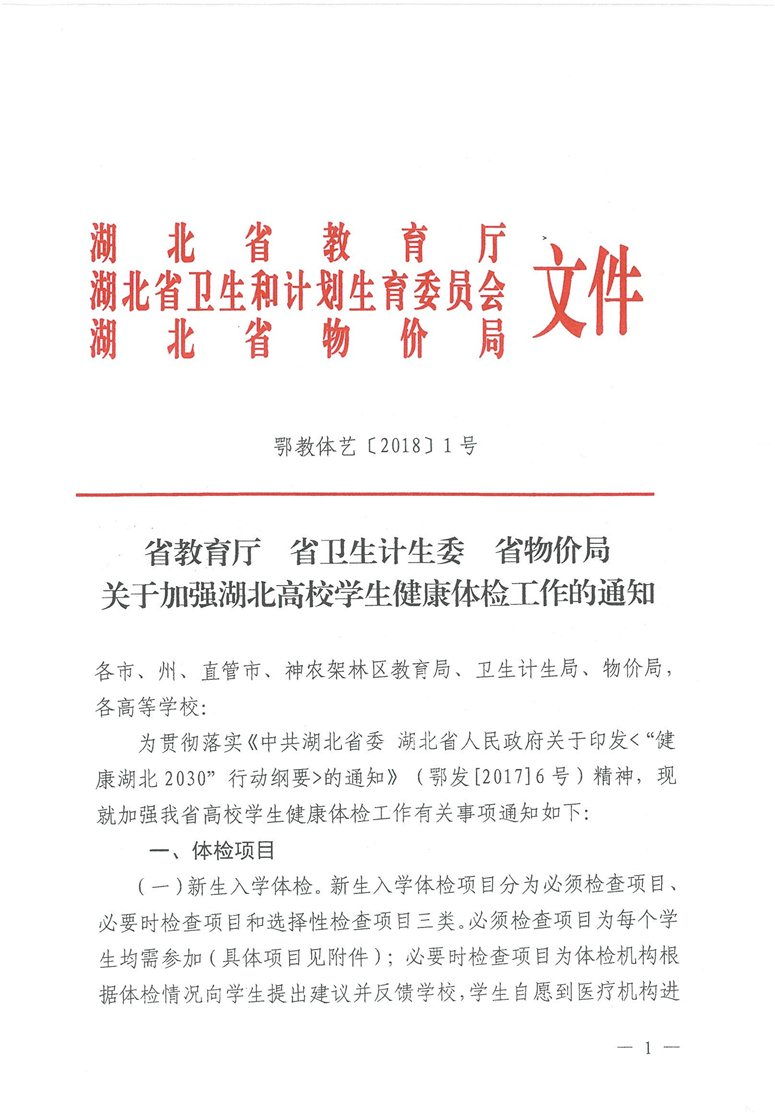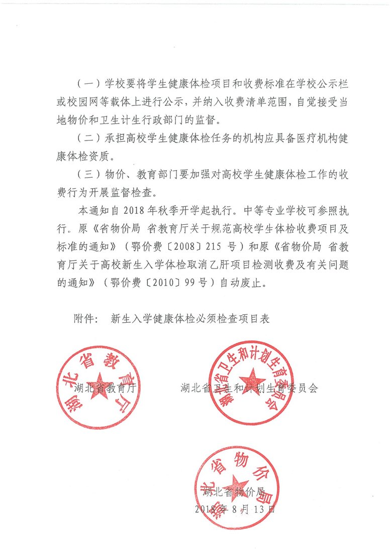 省教育厅 省卫生计生委 省物价局关于加强湖北高校学生健康体检工作的通知