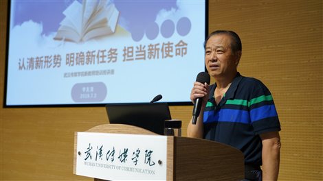 随后,特邀校外专家李友情教授为新进教职工做了《认清新形势,明确新任务,担当新使命》的主题报告,李友情教授站在时代发展的高度,高屋建瓴地从宏观理念形势到中观思路举措到微观职责方法,层层推进、满怀激情的给大家分析了新时代的特点大势,国家区域经济文化发展形势和高等教育质量革命的态势,指出在这个机遇与挑战并存,大有可为的时代,我们必须树立战略意识,把握好时代发展、高等教育发展和现代传媒业发展三大趋势,从八个一入手,落实好新高教四十条和建金专、建金课、建金师、建高地这四大核心任务,并特别对新教师如何建好金课,从理念、内容、方法、技术四个方面进行了详细的指导,号召新教师们要努力提高专业素养,作“四有”好老师,践行“四为”,站位讲台,唱响舞台!