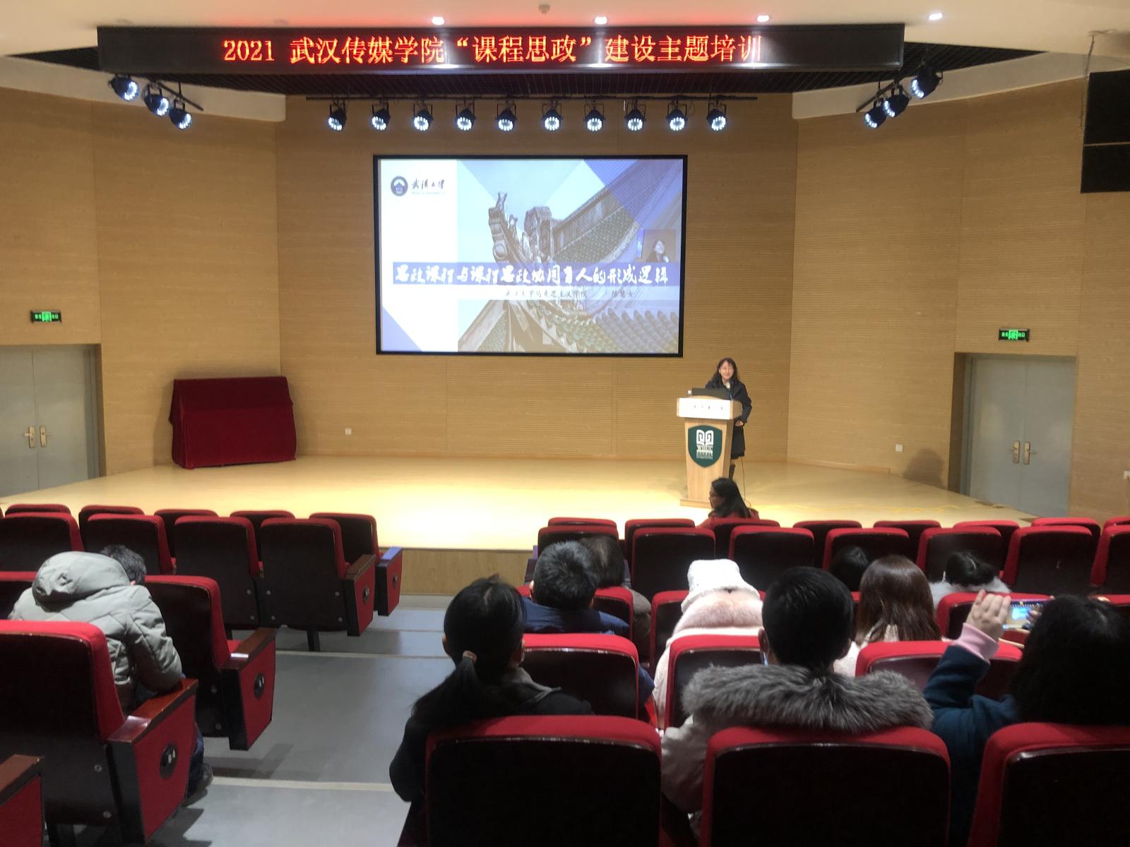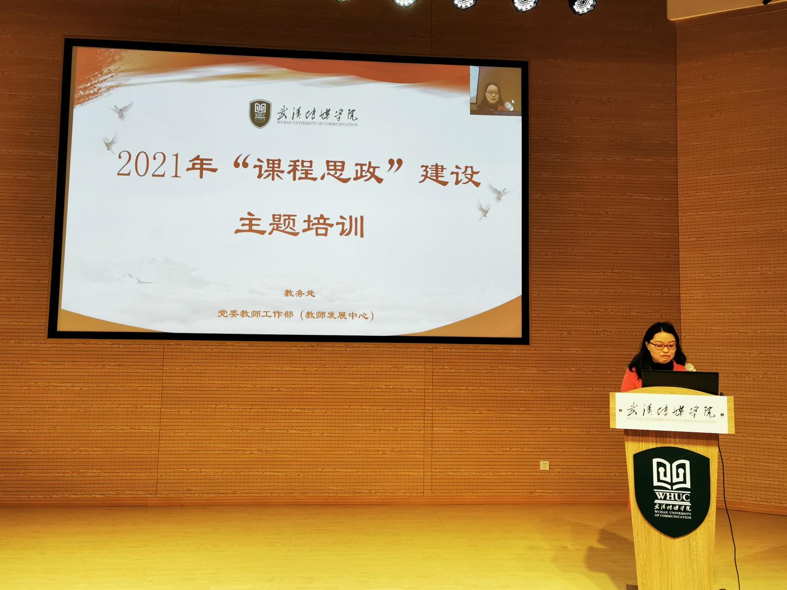 (通讯员 赵一楠)为贯彻落实教育部等八部委联合印发的《关于加快构建高校思想政治工作体系的意见》(教思政〔2020〕1)号、教育部《高等学校课程思政建设指导纲要》(教高〔2020〕3号)和高等学校课程思政工作视频会议精神,以系统观全面推动“课程思政”建设和改革创新,发挥好每门课程的育人作用,提高我校人才培养能力和质量,1月11日,我校以“主会场现场讲授+分会场同步直播观看”的形式举办了“2021年‘课程思政’建设主题培训”,邀请武汉大学马克思主义学院副教授、硕士生导师陈慧女来校讲座。校长助理兼人事处处长、党委教师工作部(教师发展中心)副部长姚晓菊主持会议,教务处(科技处)处长姜虹,及各学院教学院长、教研室主任在主会场与陈教授进行交流。