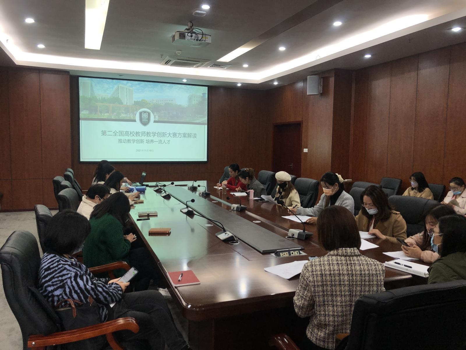 接中国国家教育学会通知,将举办第二届全国高校教师教学创新大赛。11月19日,我校召开《第二届全国高校教师教学创新大赛方案解读会》,邀请教务处、教学质量管理处、各学院(课部)副院长(院长助理)、学院赛事秘书参加。